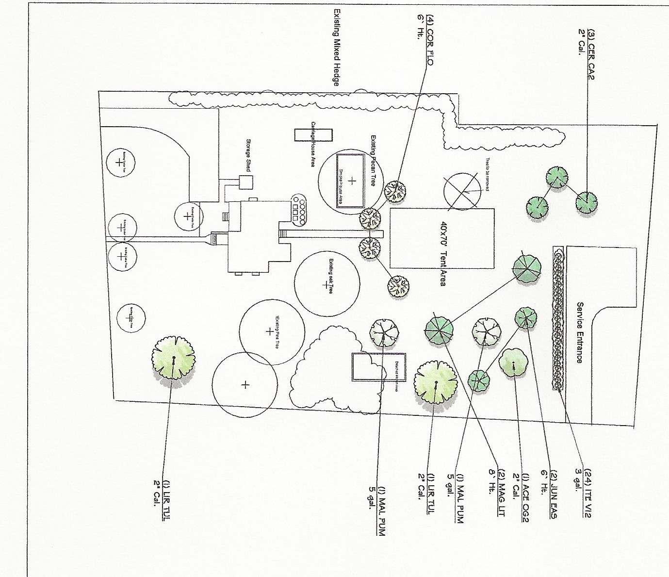 The FOHH landscaping plan for the Davie House includes flowering trees and bushes, privacy shrubs, and a brick pathway as well as grading of the yard behind the house which can be rented and tented for events and special occasions.